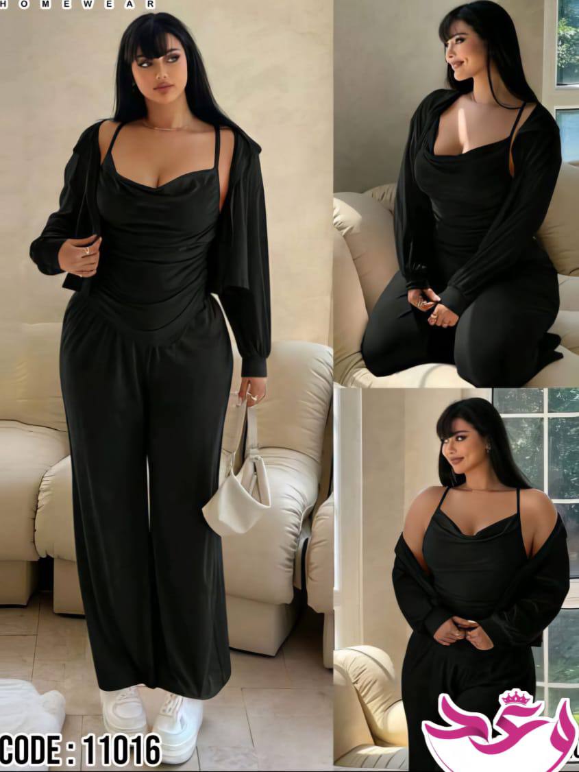 بيجاما حريمي بيتي 3 قطع قطن