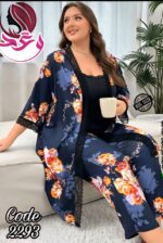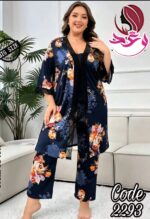 بيجاما حريمي تلت قطع قطن ليكرا طباعة سبليمشن مع دانتيل
