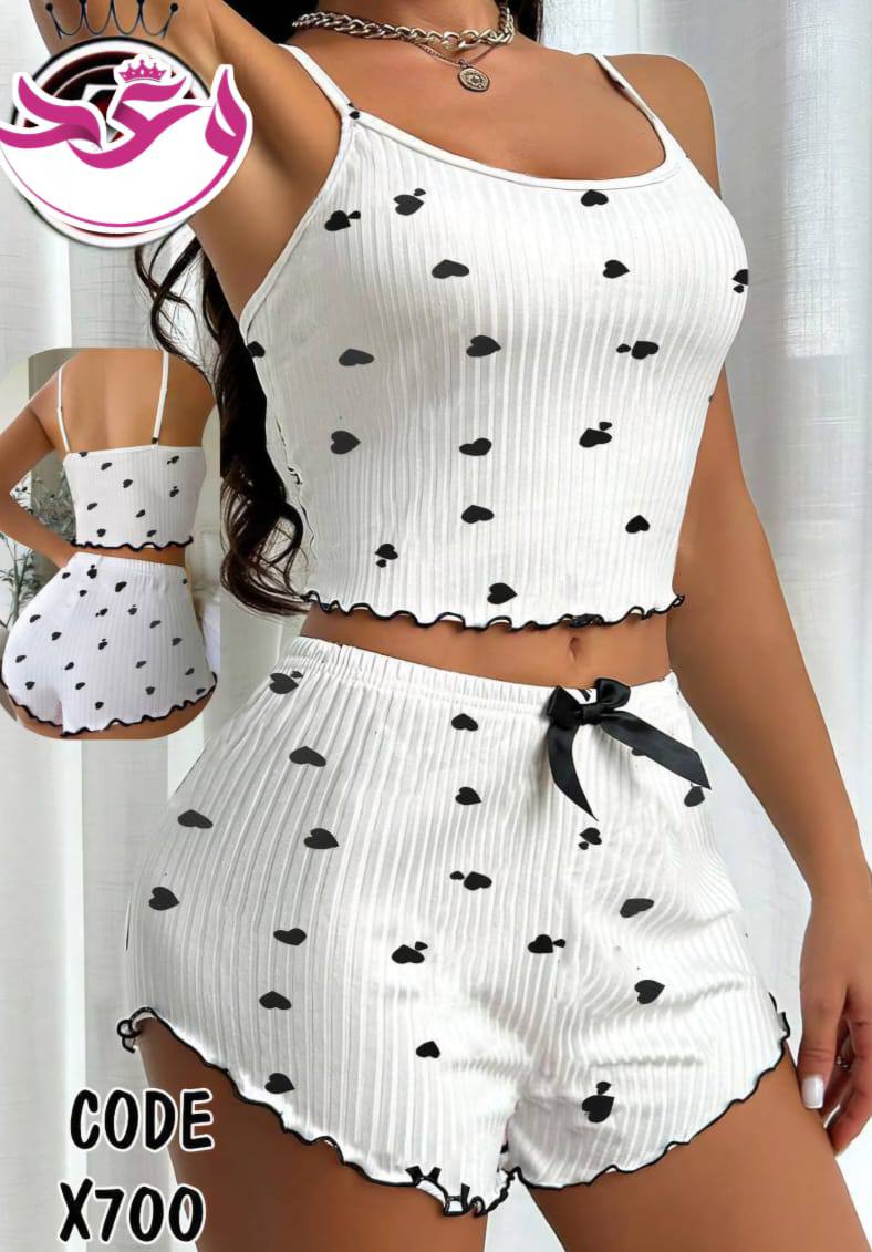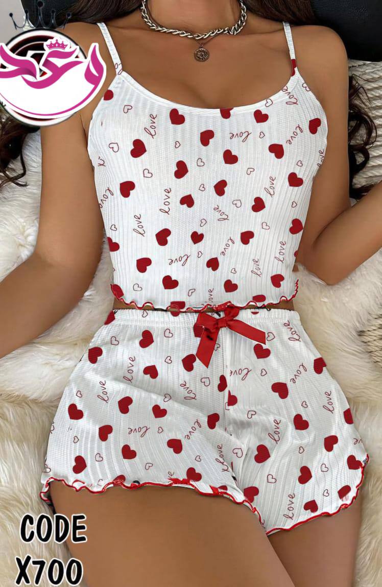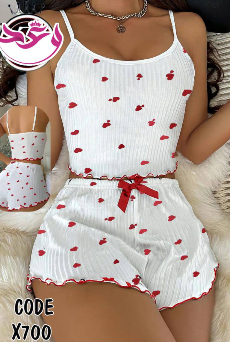 طقم هوت شورت حريمي قلوب صغيره الخامه ريب فل