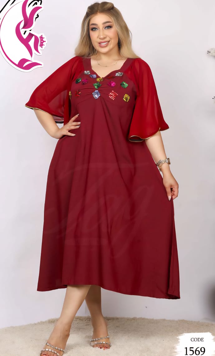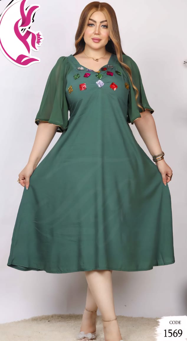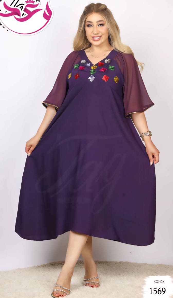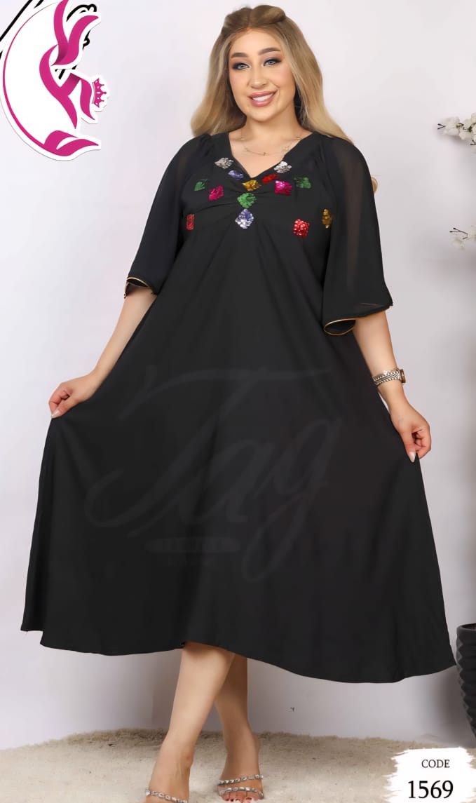 عباية حريمى شانيل بكم شيفون شغل يدوى على الصدر شريط جزريه على الكم