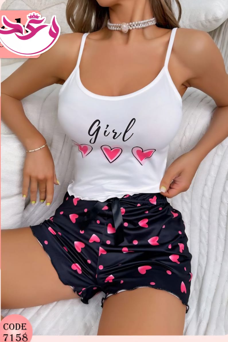 هوت شورت حريمي قطعتين قلوب حماله