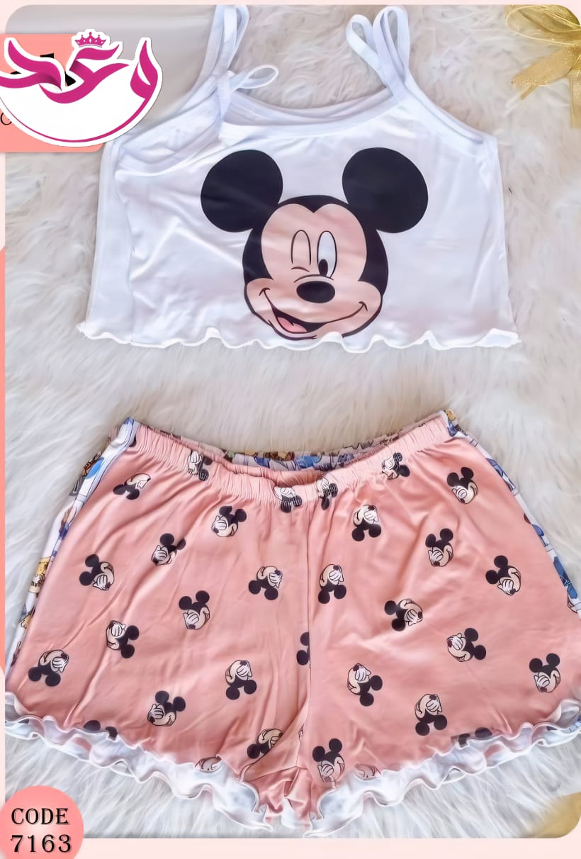 هوت شورت حريمي ميكي موس قطعتين حماله