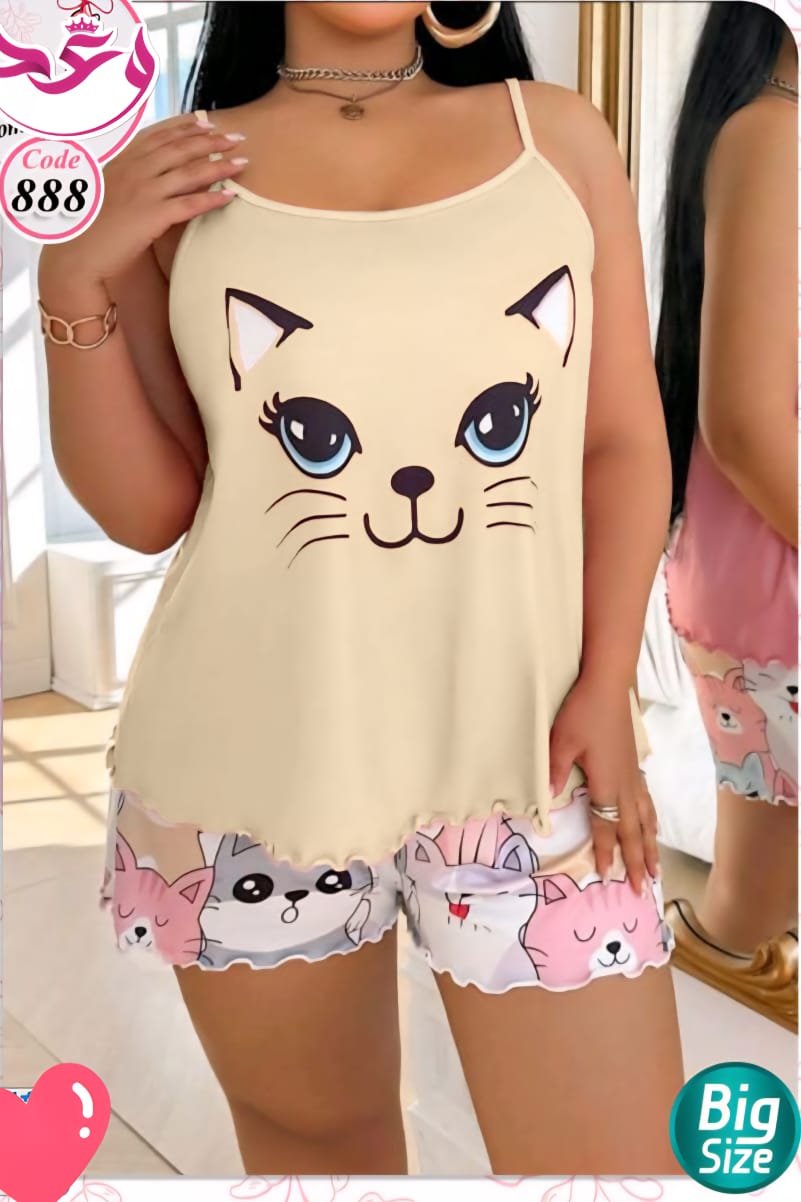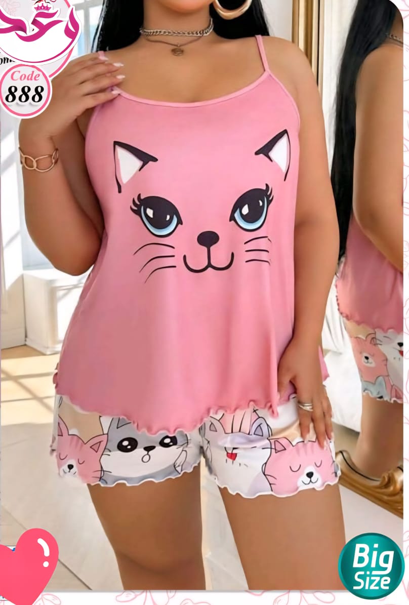 هوت شورت حريمي قطعتين قطن ليكرا طباعه سبليمشن